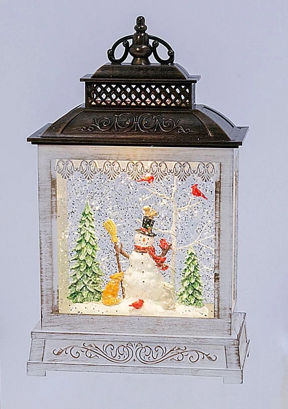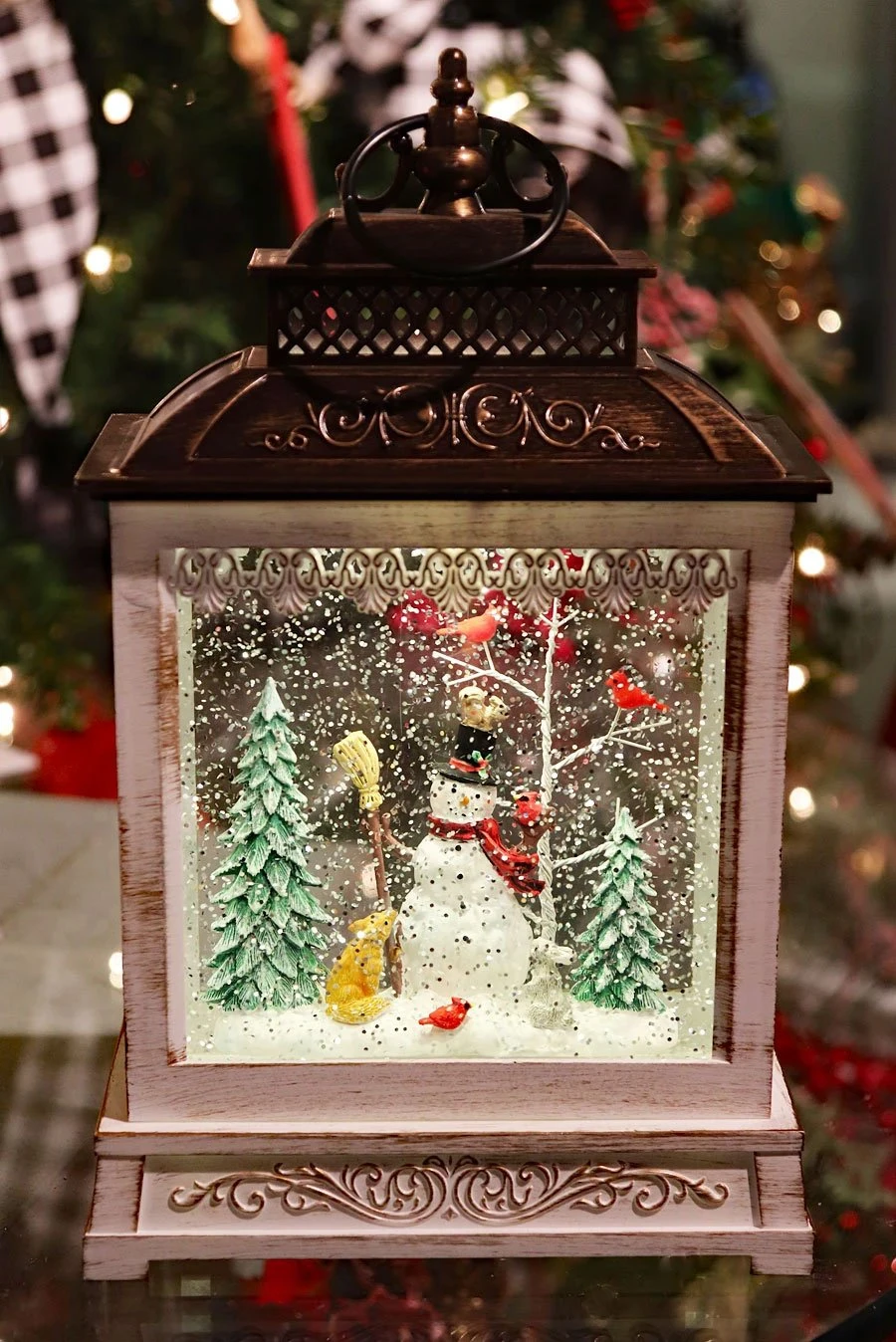 Animated Kissing Snowmen Under The Mistletoe Lighted Water Lantern