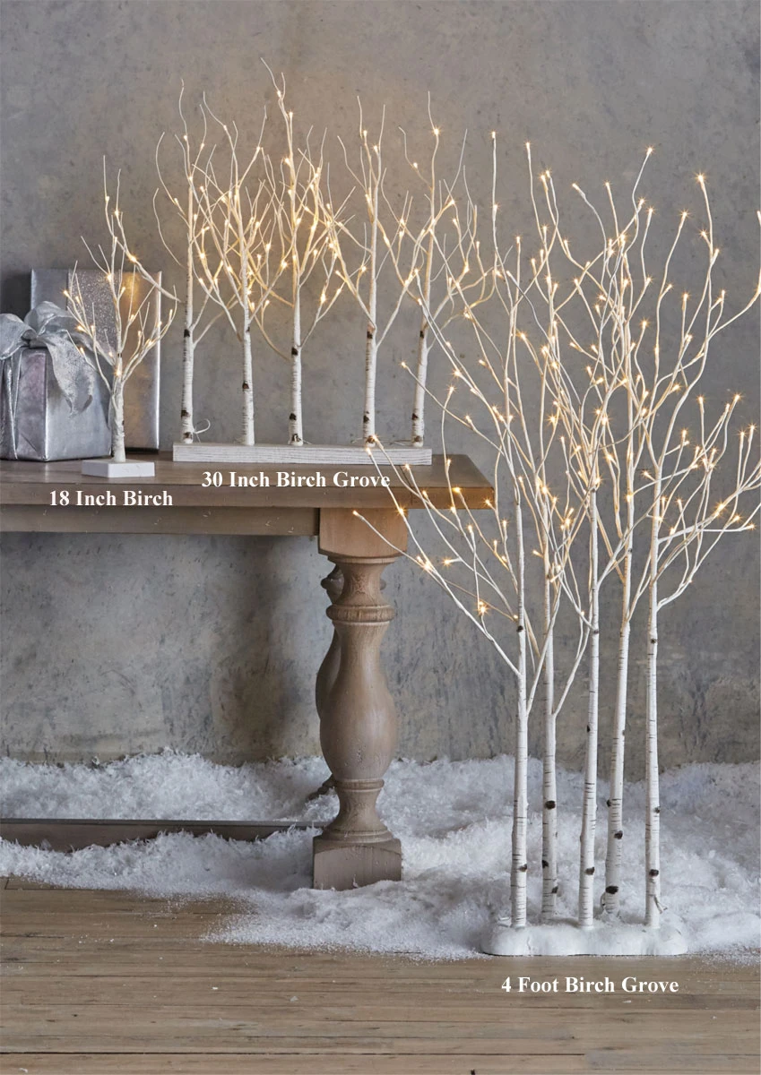 - 4 Foot Lighted Birch Grove on white rounded edge base with white branches