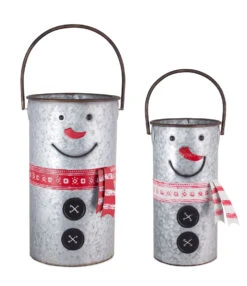 Set Of 2 Nesting Galvanized Snowmen Buckets With Handles 16 -18 Inch