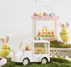 Lighted Easter Shopping Bag With Chicks And Egg Figurines In Swirling Glitter
