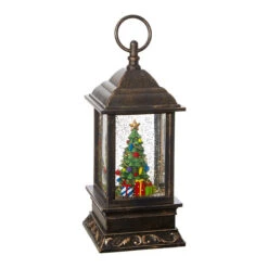 9.5 Inch Christmas Tree Lighted Musical Water Lantern With Timer