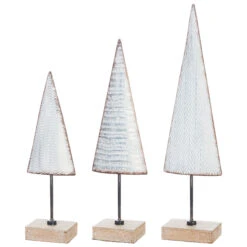 Galvanized Metal Holiday Trees On Wood Base – 15, 18, 21 Inch Set Of 3