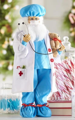 Tall 17.5 Inch Santa Figurine In Robe With Teddy And Hot Cocoa