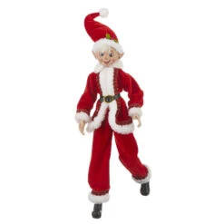 16 Inch Winter Cottage Cozy Posable Elf Figurine, Set Of 2 Assorted