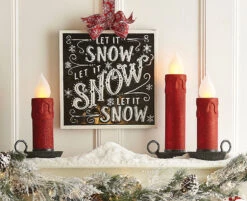 17.5 Inch Large Flickering Flame Red Glitter Christmas Candle